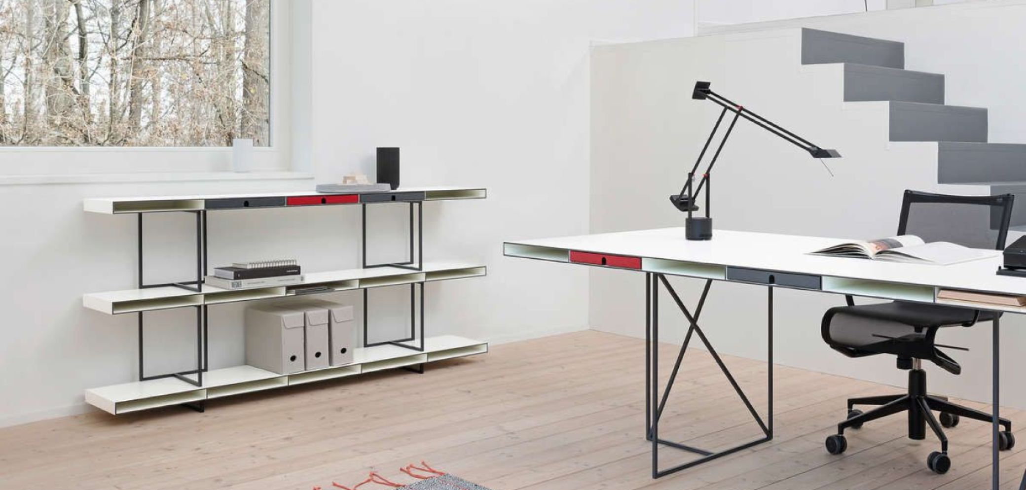Puristisch, leicht und elegant – so präsentiert sich das schlanke Regal «Horizontal» aus der «Caro»-Kollektion von Wogg. Das von Christophe Marchand entworfene Möbel bietet Stauraum im Wohnbereich, Home Office oder Büro. Es ist leicht kombinierbar und jeder Raum lässt sich damit persönlich gestalten. Erhältlich sind die Abmessungen 168,5 × 34,1 × 50,3 / 88,1 / 125,9 cm (L × T × H) in schwarzem oder weissem HPL, mit Tragstrukturen in Schwarz, «Dark sea grey» oder Chrom. Die Einschubboxen gibts in Schwarz, «Dark sea grey» oder «Scarlet red».