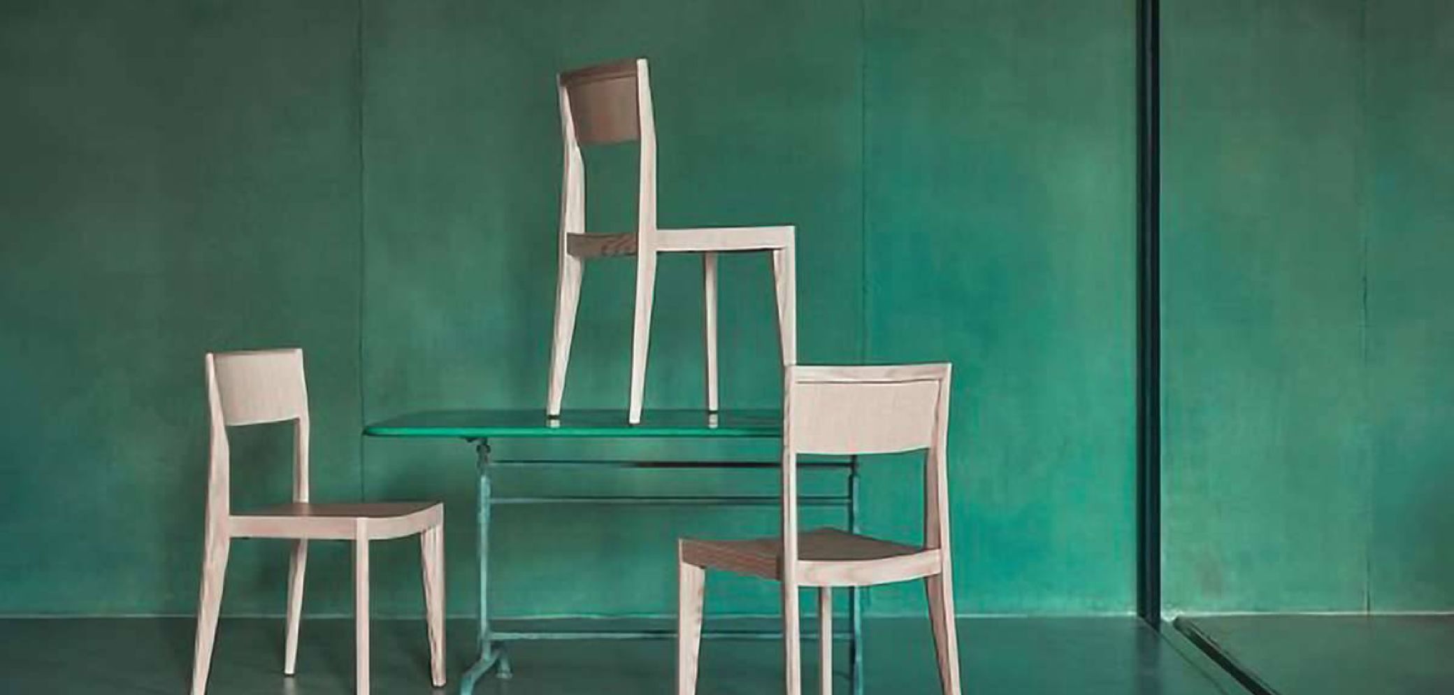Seit mittlerweile zehn Jahren produziert der Schweizer Hersteller Schindlersalmerón Stühle. Mit dem H/02 wurde das Angebot nun um einen auf den ersten Blick unspektakulären Holzstuhl mit vier Beinen erweitert. Gerade diese schlichte Eleganz schafft gute Voraussetzungen auch für den Objektbereich, wie in der Pflege, im Sakralbereich oder in der Gastronomie. Der Stuhl zeigt Charakter und Freude am Detail für eine Aufstellung als Einzelobjekt, bringt aber gleichzeitig die Ruhe mit, die es bei einer Aufstellung in grösserer Anzahl braucht. Die Stärke des stapelbaren Modells liegt in der unauf- dringlichen, selbstverständlich wirkenden Abstimmung der verschiedenen funktional eingebundenen Details, wie einem griffförmigen Rückenabschluss. Von dem skulpturalen Spiel der hexagonalen Beinquerschnitte wurde das H des Namens abgeleitet ist.