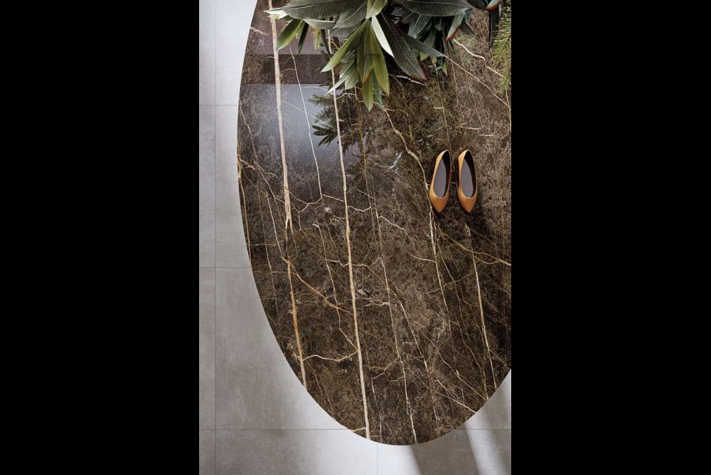 Ava Stone ist die Marke von Ava für keramische Platten mit 12 und bei einigen Modellen sogar 20 mm Stärke. Neu im Angebot ist die Reproduktion einer dunklen Marmorsorte, die einen Hauch von Eleganz für die Gestaltung von Innenausstattungen wie Arbeitsplatten, Tops und Einrichtungsgegenständen für exklusive Räume ausstrahlt. Der Eos-Marmor, welcher als Vorlage dient, zeichnet sich durch seinen schwarzbraunen Untergrund aus. Reich an goldenen, bronzenen und elfenbeinfarbenen Schattierungen und Maserungen, entsteht ein helles, gut definiertes Produkt, welches die Keramikplatte einzig- artig macht. Die Platte gibt es in einer Dekorversion, in der Stärke von 12 mm, im Format 3240 × 1630 mm.