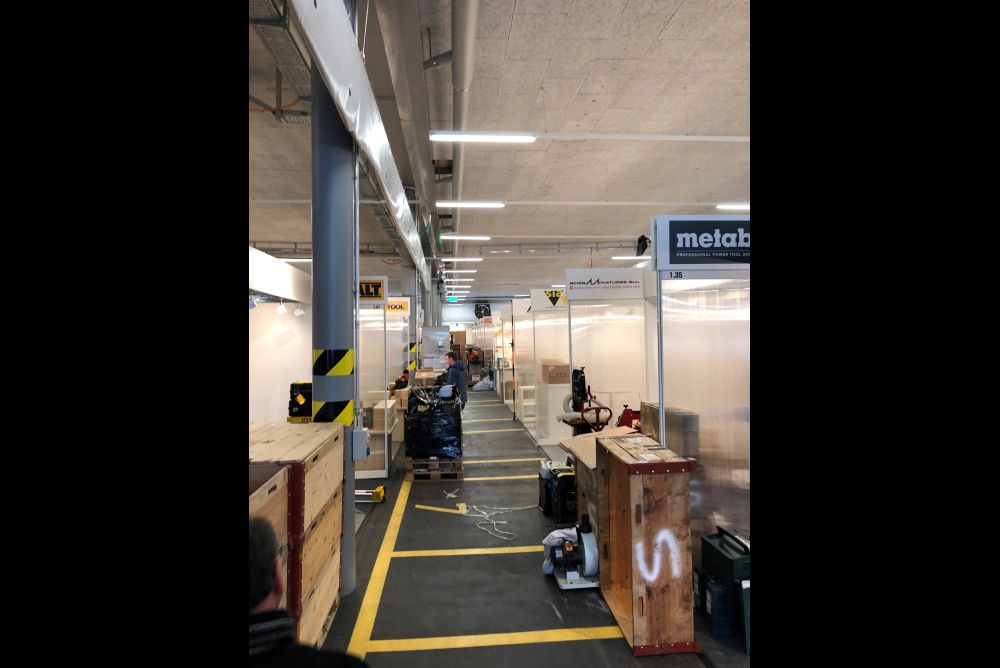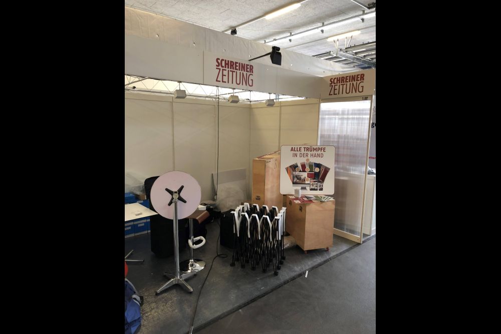 Auch der Verband Schweizerischer Schreinermeister und Möbelfabrikanten (VSSM) mit seinen Kompetenzzentren Höhere Fachschule Bürgenstock und SchreinerZeitung sind mit je einem Stand an der Messe vertreten. Doch bis alles steht, gibt es noch einiges zu tun. Dies zeigen die Bilder, die uns eben aus dem «Epizentrum» erreicht haben.