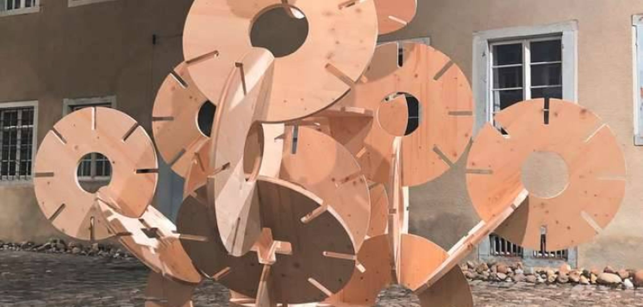 Im Innenhof des Hotels Greuterhof in Islikon TG stehen seit einigen Tagen grosse Scheiben aus Holz, die zu einer Skulptur zusammengesteckt sind. Sie erinnern an die kleinen bunten Plastik-Schneeflocken-Bausteine, die an die eigene Kind- heit erinnern, als man die Scheiben zu wilden Gebilden zusammenbaute. Das Werk der Künstlerin Tanja Brühwiler trägt den treffenden Namen «Schweizer Holz spielt eine Rolle» und wurde in Zusammenarbeit mit der Brühwiler Sägewerk und Fensterholz AG erstellt. «Wir wollten mit der Installation nicht nur eine schöne Weihnachtsdekoration schaffen, sondern auch auf das Bauen mit Schweizer Holz aufmerksam machen», sagt Geschäftsführerin Maria Brühwiler, die Schwester der Künstlerin. Einige der Scheiben tragen darum in der Mitte ein Schweizer Kreuz. Was nach Weihnachten mit der Skulptur passiert, ist noch offen. Brühwiler spielt mit dem Gedanken, daraus einen Kletterturm und Spielplatz für Kinder zu machen. Dazu brauche es aber noch einige Anpassungen.