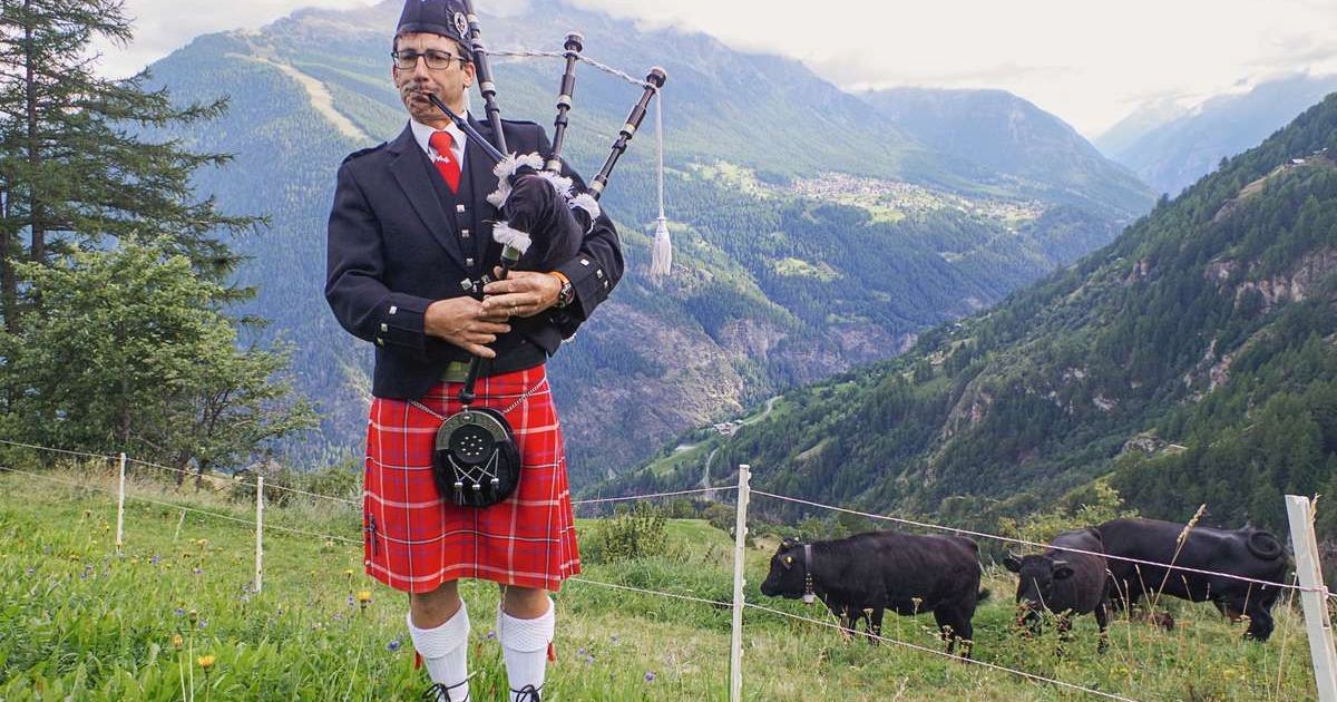 Jeder einzelne der Hobbyschotten spielte zwar in einem Musikverein mindestens ein Instrument, doch das Spiel auf dem Dudelsack war noch einmal ganz etwas anderes. Aber weil das Wort «aufgeben» im aktiven Wortschatz der Männer aus den Bergen fehlt, legten sie extra Trainingsstunden ein. Und so trug die Bergluft die nicht immer wohlklingenden Töne aus dem Übungslokal hinaus ins Tal, und nicht wenige schüttelten den Kopf. «Viele haben uns ausgelacht. Aber beratungsresistent und meinungsstabil, wie wir Walliser nun mal sind, verfolgten wir unser Ziel», erzählt Kalbermatten. Bald trug die Beharrlichkeit Früchte, und Stücke wie «Amazing Grace» oder «Scotland The Brave» ertönten recht authentisch. In der Zwischenzeit mauserten sich die Moosalp-Highlands zu einer ansehnlichen, kulturellen Grösse im Oberwallis. Der Umstand, dass sie dafür 130 Ehrenmitglieder gewinnen konnten, macht Kalbermatten stolz. «Das zeigt die Wertschätzung und ist elementar für jeden Verein», sagt er. Und so spitzen mittlerweile Tausende von Menschen und Hunderte von Eringerkühen die Ohren, wenn die zwölf Piper und fünf Drummer jedes Jahr im Juli beim Älplerfest auf der Moosalp aufspielen. Doch auch während des Jahres sind die Walliser Schotten auf Volksfesten und bei Familienfeiern gut gebucht.