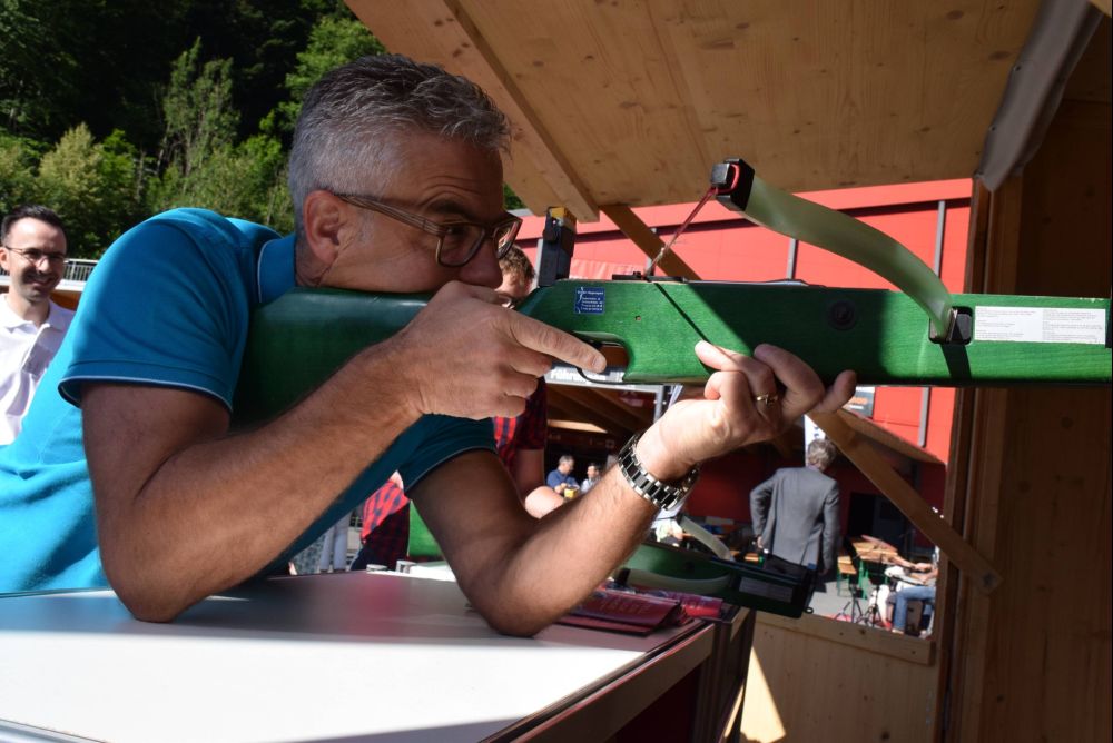 Aber auch die Schreiner konnten ihr Können unter Beweis stellen. Es galt, mit Pfeil und Armbrust ganz nach Willhelm Tell das Ziel zu treffen - und das taten die Schreiner mit Erfolg und Treffsicherheit.