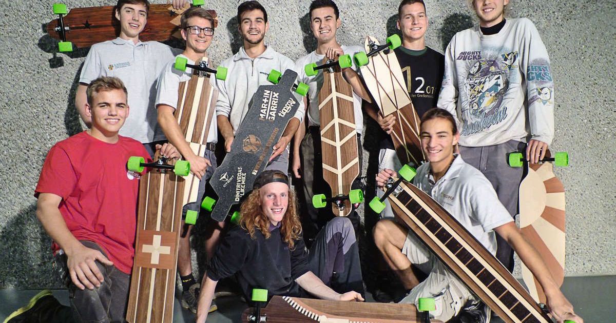 Die Lernenden mit ihren selbst hergestellten Longboards. Bild: PD