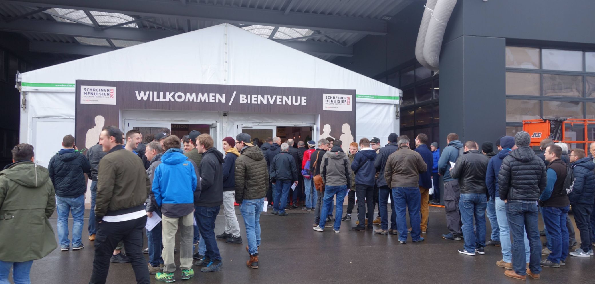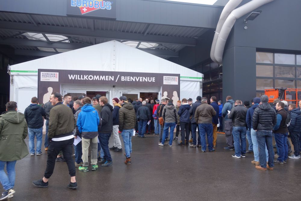 Bereits kurz nach neun Uhr bilden sich die ersten Schlangen vor dem Eingang der «Schreiner 2018» und die Besucher strömten über den in Opo-rot gehaltenen Teppich. Die Fachmesse für die holzverarbeitende Branche wird alle drei Jahre von OPO Oeschger AG organisiert. Dieses Jahr findet sie das erste Mal in den Hallen von Eurobus statt.