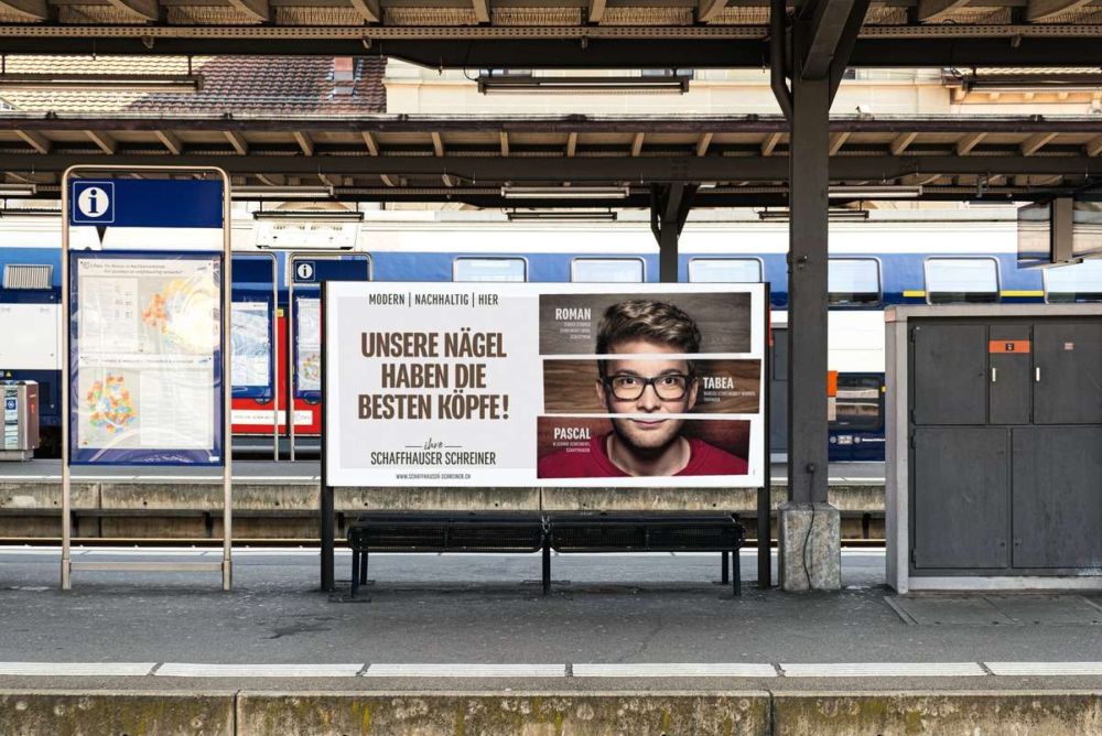 Die kreativen Plakate mit Bildern von Schreinern sind in der Region Schaffhausen zu sehen. Bild: Eclipse Studios