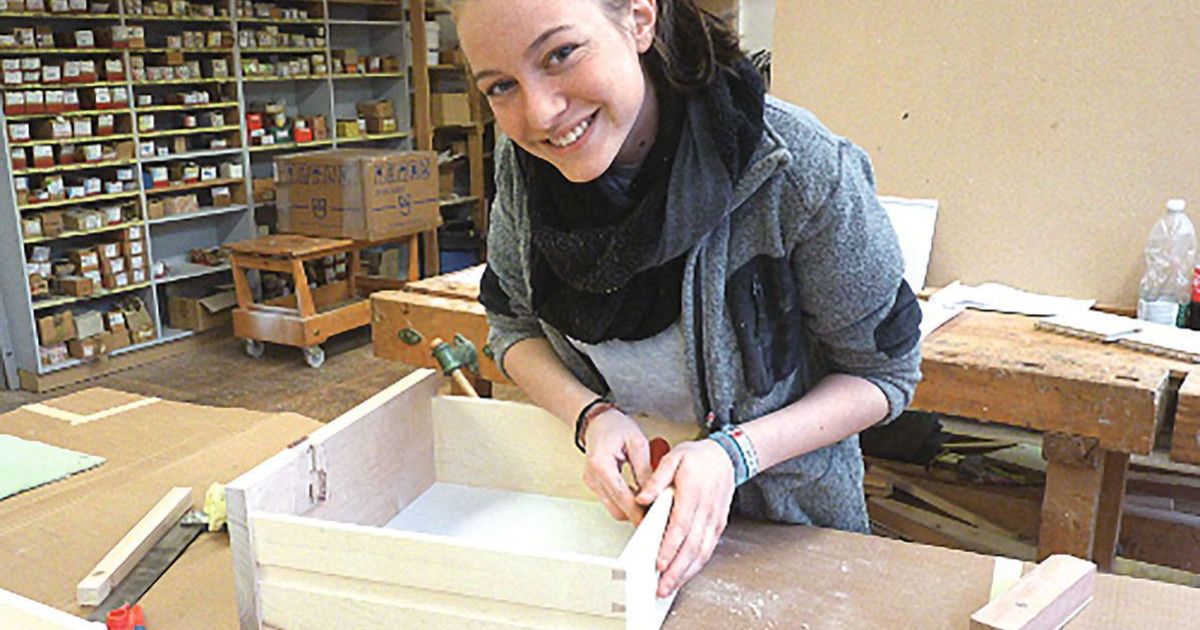 Gianna bei der Arbeit an einer Schublade aus massivem Birkenholz. Bild: Schreinerei Savoy AG