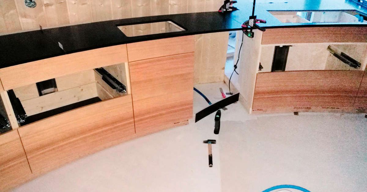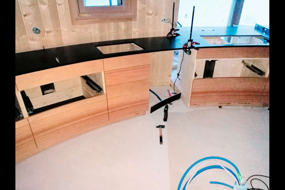 Ob bei einer runden Küche (unten) oder einem einfachen Möbel: Vanja strebt Perfektion an. Bilder: Spicher AG