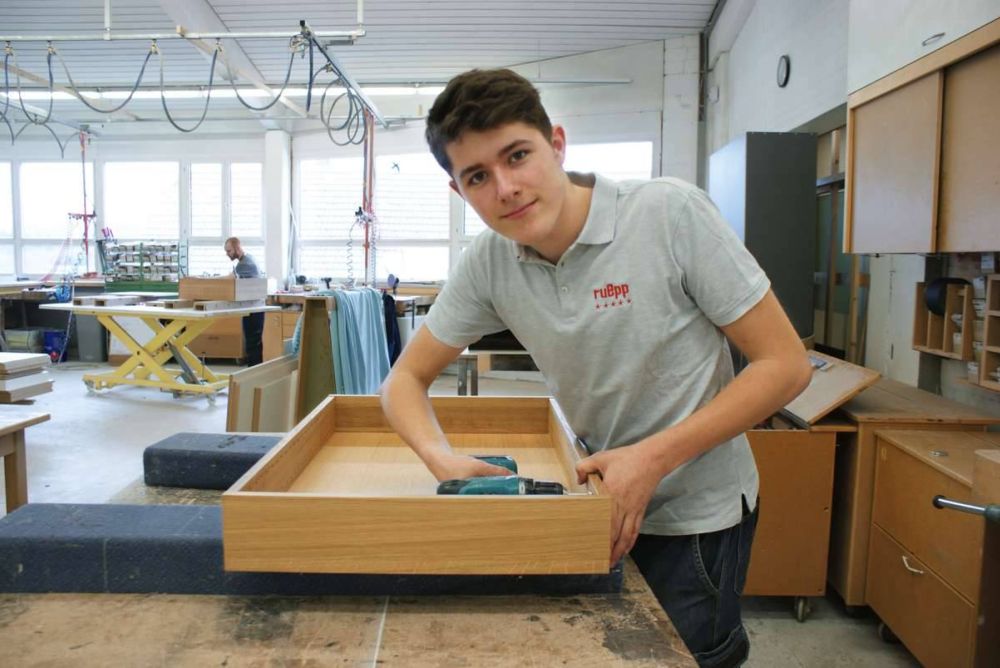 Gregor Keusch liess sich von seinem Werklehrer inspirieren und will später auch Lehrer werden. Bild: Ruepp Schreinerei AG