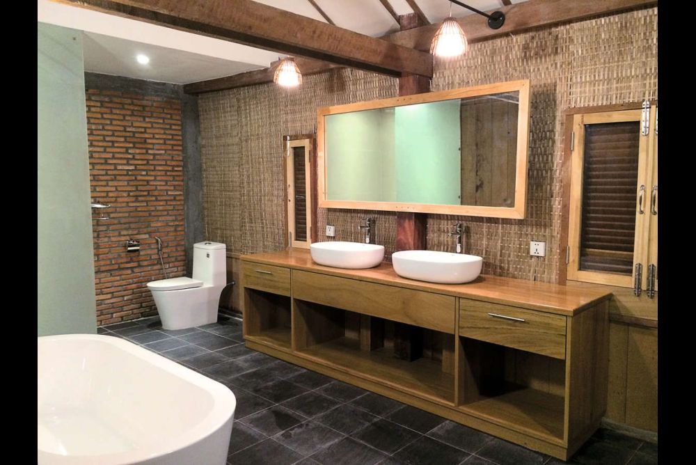 Die Arbeiten in der Schreinerei richten sich nach der Bautätigkeit auf dem Areal der Gemeinschaft von Smiling Gecko. Momentan läuft der Innenausbau des Gästehauses, und für die Hotelzimmer werden die Möbel hergestellt. Rings um das Schwimmbecken entsteht eine Holzterrasse. Für den Bau der Dorfschule und der Textilfabrik produziert die Schreinerei Holztragwerke. Gearbeitet wird mit lokalem, tropischem Holz. Dieses verfügt über eine hohe Dichte und ist sehr stabil. Für die Möbel und den Innenausbau wird Koki verwendet, ein hellgelbes Holz mit grünlichen Einläufen, das beim Auftrennen einen beissenden Geruch abgibt. Als Bau- und Konstruktionshölzer werden die rötlichbraunen und harten Khlong und Tbeng verwendet. Beide Hölzer sind harzhaltig, was die Verarbeitung erschwert.