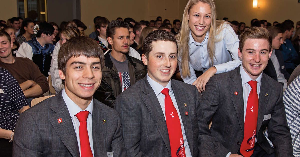 Ebenfalls geehrt wurden die erfolgreichen Teilnehmer der letzten Swiss Skills und World Skills. Dabei spielte Schreiner Reto Ettlin (Bildmitte) als Vize-Welt- und -Schweizermeister eine tragende Rolle. Auch sein Lehrbetrieb, die Walter Spichtig AG in Sachseln OW, wurde prämiert.