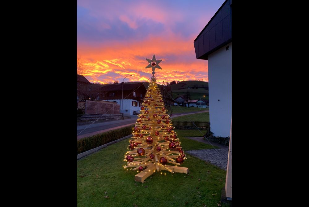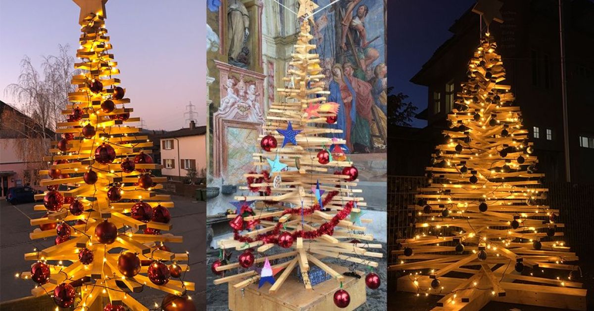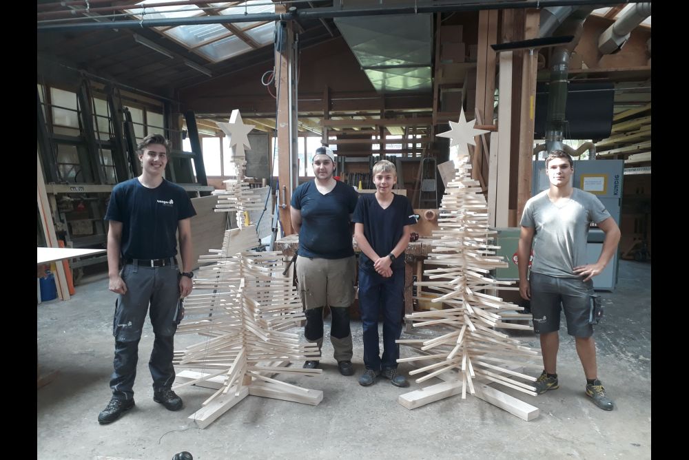 Ob von Kindern geschmückt oder von Lernenden gefertigt: Die Schreiner-Weihnachtsbäume bezaubern. Collage: SZ