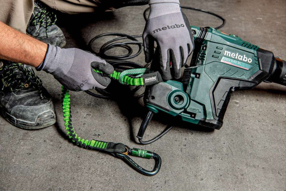 Metabo hat ein neues Sicherungssystem mit drei Werkzeugsicherungsgurten für unterschiedliche Belastungen im Angebot, die Maschinen vor dem Herunterfallen bewahren. Rund 80 Prozent der Elektrowerkzeuge wiegen bis zu fünf Kilogramm. Für diese Maschinen gibt es den Werkzeugsicherungsgurt wahlweise mit Karabiner und Schlaufe oder als Variante «Quick Connect» mit Karabinern an beiden Enden. Die Karabiner werden an einem geeigneten Befestigungspunkt angebracht, die Schlaufe kann einfach um den Werkzeuggriff geschlungen werden. Die Karabiner der Fünf-Kilo-Sicherungsgurte sind aus leichtem Aluminium gefertigt und um 360 Grad schwenkbar. So kann der Gurt in jeder Arbeitsposition eingesetzt werden und ermöglicht eine hohe Bewegungsfreiheit, denn der Karabiner dreht sich bei Bewegung mit.