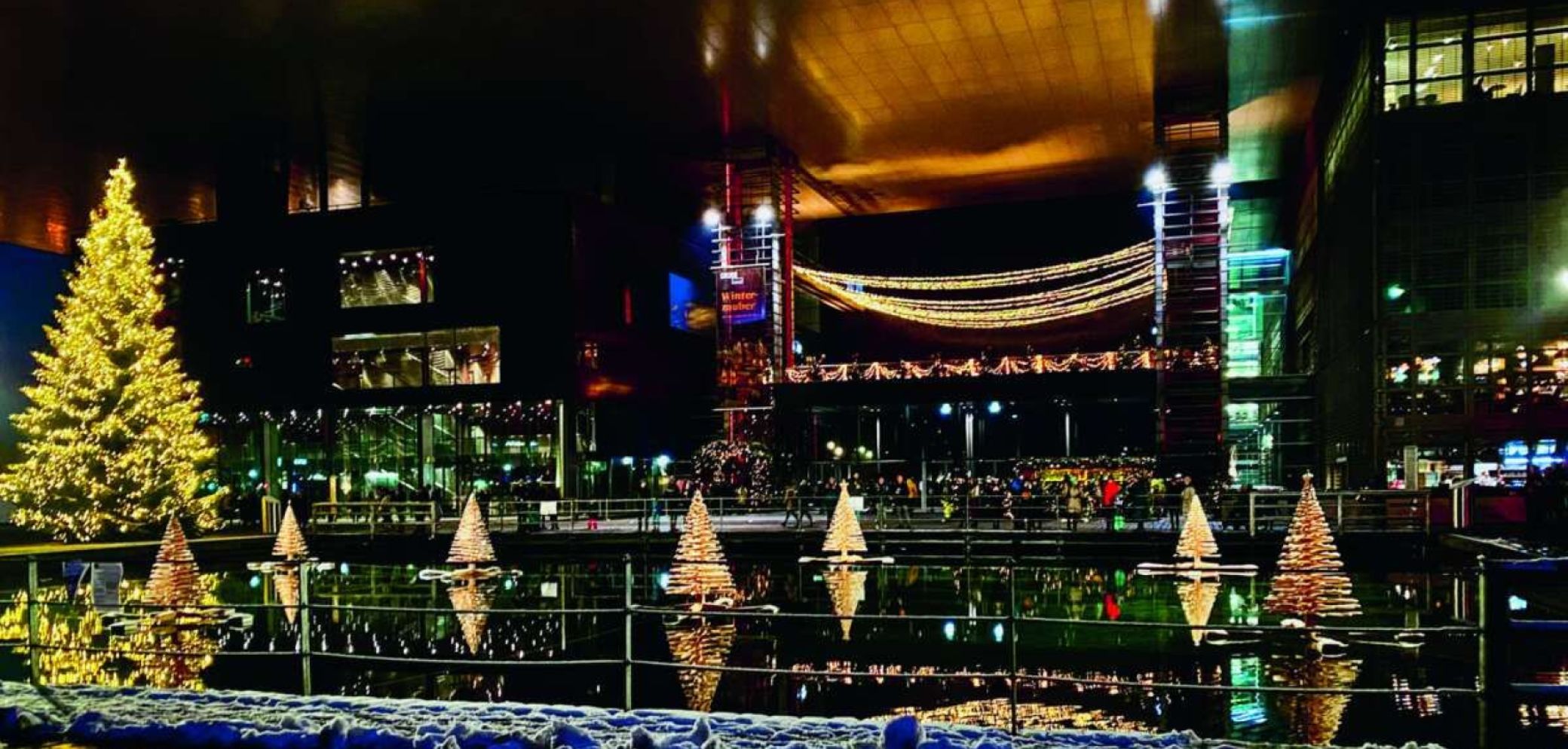 Sektion LUzern. Statt einer Eisbahn realisierten der Verein Weihnachten in Luzern und Luzern Tourismus vor dem Kultur- und Kongresszentrum ein Bassin mit schwimmenden Christbäumen. Diese waren aus Holz und kamen mit Schützenhilfe der Luzerner Schreiner ins Wasser.
