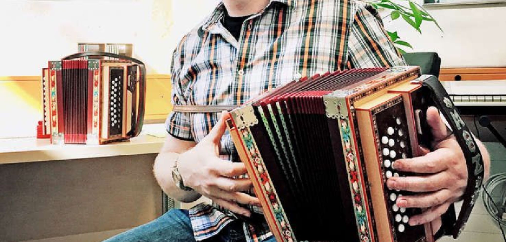 Im Leben von Marcel Zumbrunn (39) dreht sich alles um die Musik und das Schwyzerörgeli. Bild: Claudia Waldmann