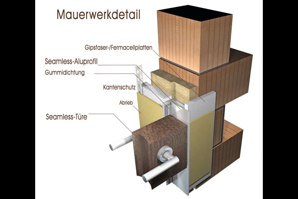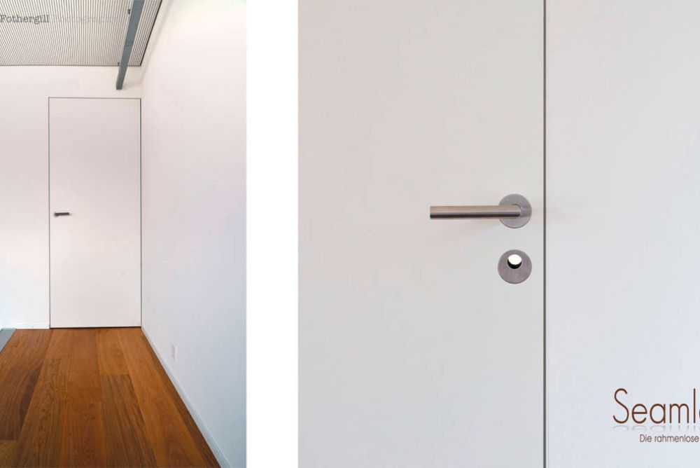 Seamless bezeichnet ein Türsystem, bei dem im eingebauten Zustand weder innen noch aussen ein Rahmen zu sehen ist. Entwickelt wurde die Tür für den designorientierten, detailbetonten Innenausbau. Die Technik basiert auf einem stranggepressten Aluminiumprofil, das sich gänzlich im Mauerwerk integrieren lässt. Zu sehen ist nur der Falzbereich und auch nur, wenn die Türe geöffnet ist. In dieses Profil wird die Schliesstechnik eingebaut. Zur Verwendung gelangen komplett verdeckte Bänder. Montiert werden die Aufnahmeprofile auf eine Holzwerkstoffplatte, durch die auch die Befestigung an das Mauerwerk oder den Trockenbau erfolgt. Als Putzträger dient eine gipsgebundene Faserplatte. Um die Tür sauber mit der Wand zu verbinden, muss die Montage vor dem Grundputz beziehungsweise im Leichtbau vor der Beplankung, erfolgen.