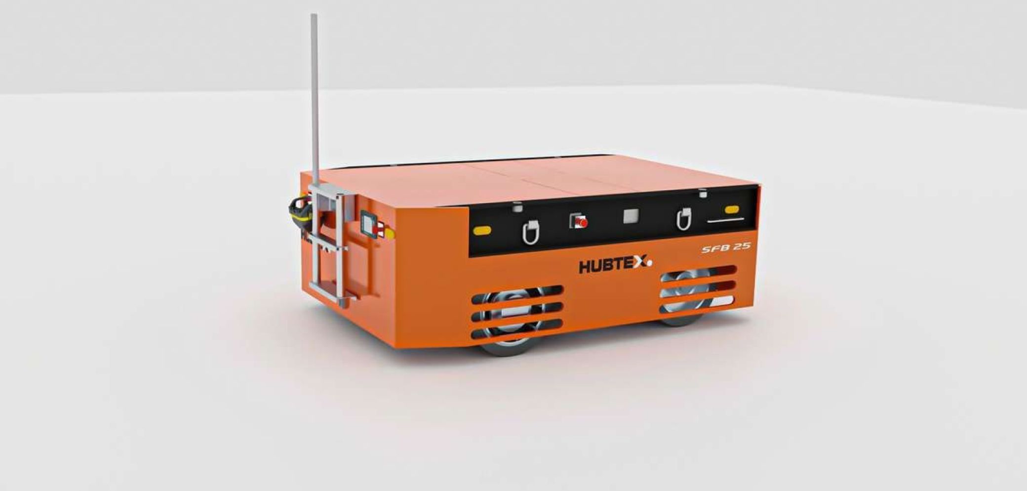 Im Gegensatz zur Standardlenkung über Achse und Zylinder mit einem maximalen Lenkwinkel von 45° sind bei der eingesetzten Einzelradlenkung an der Vorderachse bis zu 70° möglich. Aufgrund des grossen Lenkwinkels lassen sich die Wenderadien insgesamt deutlich minimieren. Der Plattformwagen bietet eine kostengünstige Alternative zu Fahrzeugen mit Allradlenkung. Ein weiterer positiver Aspekt der neuen Lenkung ist der geringe Platzbedarf im Fahrzeug. Somit lassen sich kompaktere Bauformen realisieren als bei Modellen mit hydraulischer Lenkung. Der SFB 25 ist 2550 mm lang, 1750 mm breit sowie 900 mm hoch und kann aufgrund der modularen Bauweise ideal an unterschiedliche Kundenanforderungen angepasst werden.
