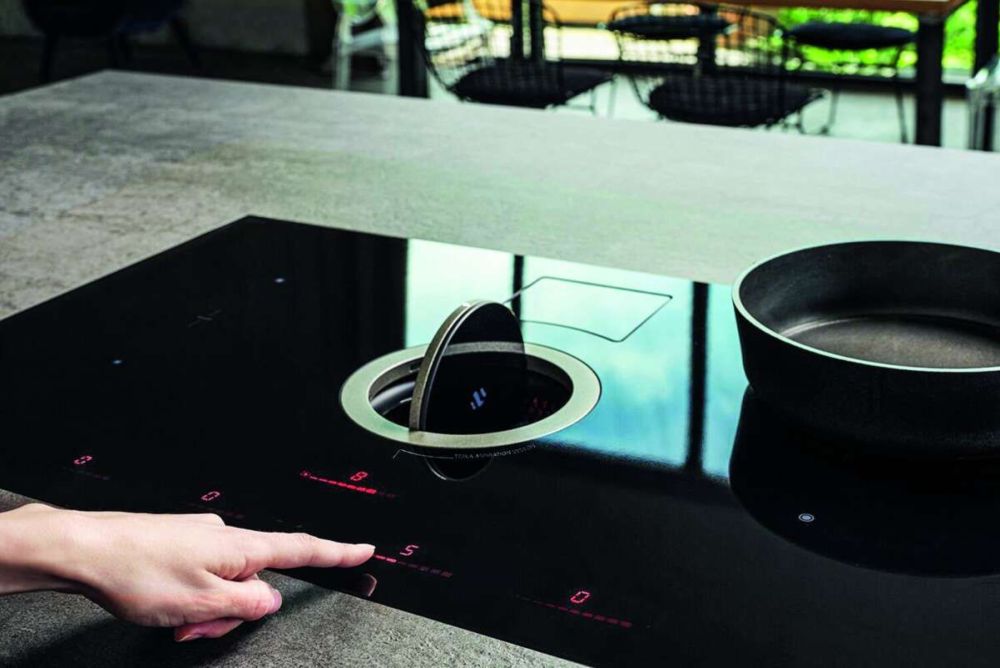«Nikolatesla» von Elica vereint zwei separate Küchenelemente in einem einzigen Produkt: das Kochfeld und die Abzugshaube. So werden einfache, alltägliche Aufgaben in einem Zusammenspiel von Technologie, Funktionen und einem guten Aussehen definiert. Die Modelle haben eine Abzugsgeschwindigkeit von 5,1 m/s und fangen Dämpfe und Gerüche ab, bevor sie nach oben steigen. Mit dem Programm «Autocapture» kann man sich auf das Kochrezept konzentrieren: Die Absaugung reguliert sich selbst auf Basis der Zahl und der Leistung der eingeschalteten Kochzonen.