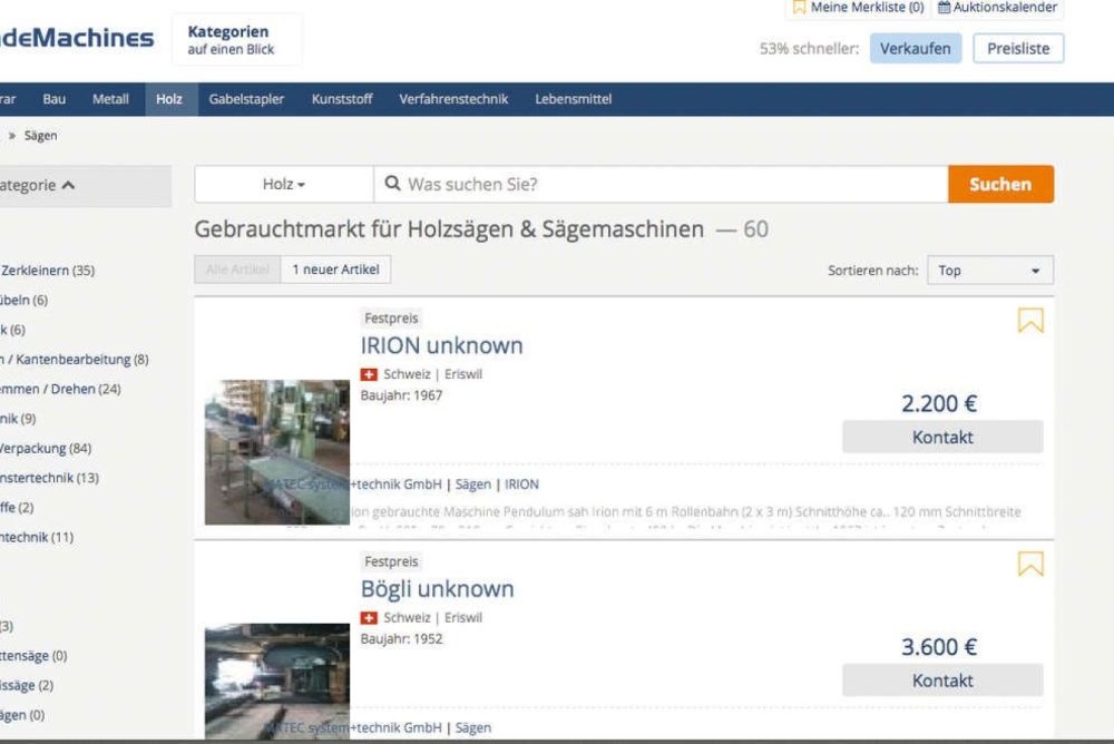 Online-Maschinenhandel. Internetportale für Verkauf und Versteigerung von Occasionsmaschinen haben Hochkonjunktur. Diese agieren global und profitieren von Umwälzungen in den Branchen. Der Hype macht auch vor den Toren der Schweizer Schreinereien nicht halt.