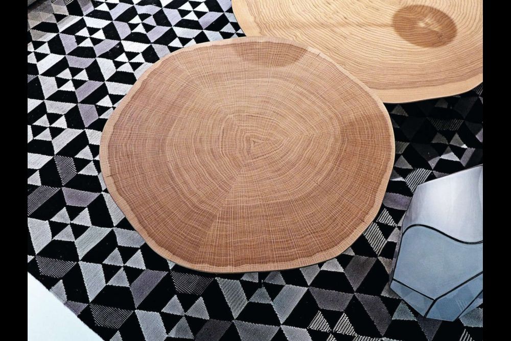 Neues wollte entdeckt werden. Es fand mehr im Detail statt als im Offensichtlichen. Und so wirkten viele Kollektionen auf den ersten Blick vertraut; Altbekanntes schien Vorrang zu haben. Es wurde nach Sicherheit gestrebt, und so waren nach wie vor ältere Designs sehr beliebt. Sie bestimmten in der Grundlage die Kollektionen. Aber es fanden sich auch immer wieder Spezialitäten wie kleine Tische, deren Blätter aus Baumscheiben bestanden und die, um rissfrei zu werden, nach dem Trocknen in drei Segmente geschnitten und neu zusammengefügt wurden – was auf den ersten Blick kaum zu sehen war. Massivholz war immer noch sehr wichtig. Da zeigte sich dann auch wahres Können. Während ein grosser Teil der Anbieter ihre Holzzusammenstellung bei Flächen in Brettoptik machte, gab es auch Hersteller wie beispielsweise die deutsche Firma Scholtissek oder die Girsberger AG aus Bützberg BE, die Bildaufbauten mit Massivholz schufen und deren Möbel dadurch einen noch stärkeren Unikatscharakter erhielten.
