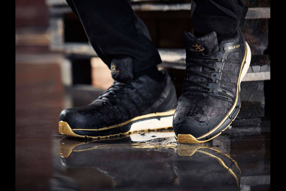 Die Schuhe «Star Camo Infinity GTX» überzeugen mit dem von Solid Gear bekannten, modischen Design. Dank kleiner, aber wirksamer Details in Verbindung mit den Star Camo Tarnfarben kann der Sicherheitsschuh auch als sportlicher Laufschuh angesehen werden. Wie Johan Hult anführt, sind die Sicherheitsschuhe «Star Camo Infinity GTX» überwiegend für Personal im Service und in der Logistik im Aussenbereich geeignet. «Mit der aussergewöhnlichen Rückfederung durch die Zwischensohle aus E-TPU in Verbindung mit dem wasserdichten Obermaterial Gore-Tex® Pearl hat Solid Gear einen Sicherheitsschuh realisiert, in dem unabhängig vom Wetter auch anstrengende Arbeit komfortabel zu erledigen ist», fügt Hult an.