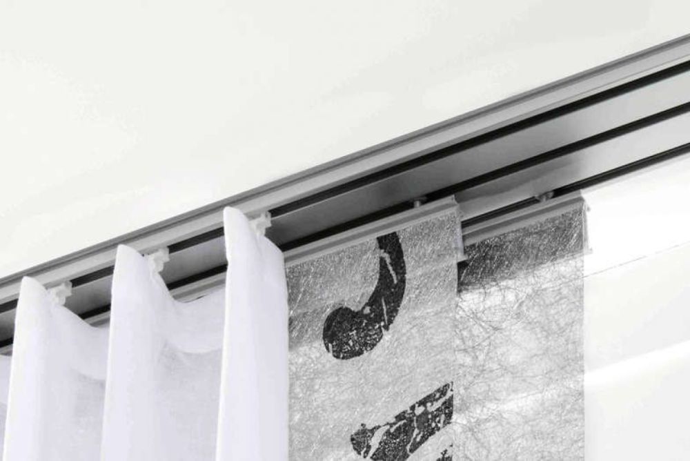 Die Schienenhersteller bieten Aluprofile mit zwei und mehr Schienen an. Bei drei- und vierläufigen Profilen liegen die Abstände bei rund 26 mm. Das erlaubt noch eine zusätzliche Trendsorte: den Flachvorhang. Stoffbahnen haben oben und unten über die ganze Breite eine Stange eingearbeitet und gleiten wie textile Schiebewände vor dem Fenster sowie allenfalls den Wandelementen. Sie brauchen wenig Tiefe, aber mindestens zwei Ebenen, um übereinander geschoben werden zu können und somit das Fenster freizugeben. Zusätzliche Schienen erlauben ansonsten aber auch das Aufhängen von Dekorelementen.