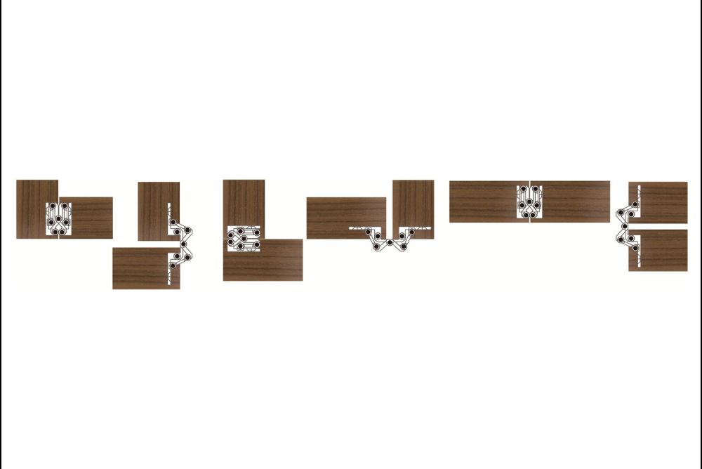 Das «Sepa»-Scharnier von Siso Denmark hat sieben Achsen, die mit einem Edelstahlstift verbunden sind. Das Möbelband aus Zinkdruckguss im Edelstahllook erhält dadurch eine besondere Bewegungsdynamik und hohe Stabilität. Die beiden Lappen des Scharniers (52 × 18 mm) werden in der Möbelseite und -front eingelassen. Die vier Langlöcher des Bandes bieten ±2,5 mm Spielraum bei der Montage und beim Justieren. Mithilfe der runden Befestigungslöcher kann das Band anschliessend in der gewünschten Position fixiert werden.