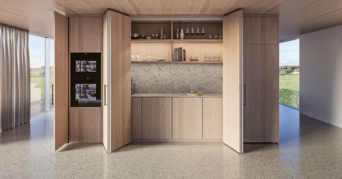 Alla Holz 2025, il marchio Hawa ha presentato le nuove opzioni in materia di interior design della gamma di ferramenta per ante a scomparsa girevoli Concepta III, in particolare l’innovativa Folding Concepta III permette di realizzare frontali in legno di grandi dimensioni, fino a 3 metri di larghezza e 2,70 metri di altezza, anche senza divisorio centrale. Una tecnologia a forbice consente una guida senza pavimento, garantendo così un utilizzo flessibile e salvaspazio. Le ante ruotano di 90 gradi e si ripiegano lateralmente, se così progettate. Nella versione senza maniglia, un semplice tocco intuitivo fa riapparire e chiudere la porta. Il supporto ergonomico del movimento garantisce un funzionamento fluido e uniforme, mentre un sistema di funi di alta qualità assicura massima stabilità; i magneti guidano le porte nel vano e l’ammortizzatore integrato consente una chiusura automatica morbida e silenziosa.