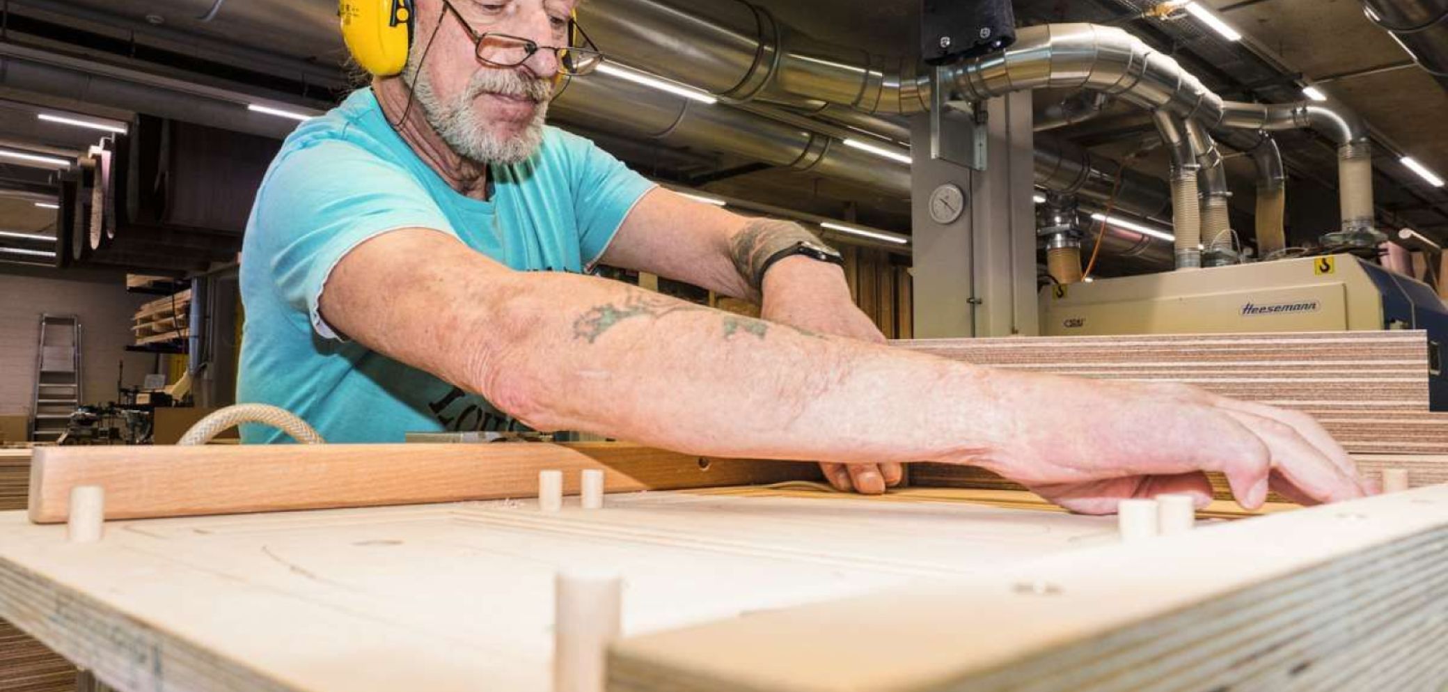 Sozialunternehmen. Die Mitarbeitenden in der Schreinerei von Valida, einem Unternehmen mit sozialem Hintergrund, sind Experten. Sie beherrschen ihre Arbeitsschritte und freuen sich an der Routine. Das setzt die Schreinerei unternehmerisch klug ein.