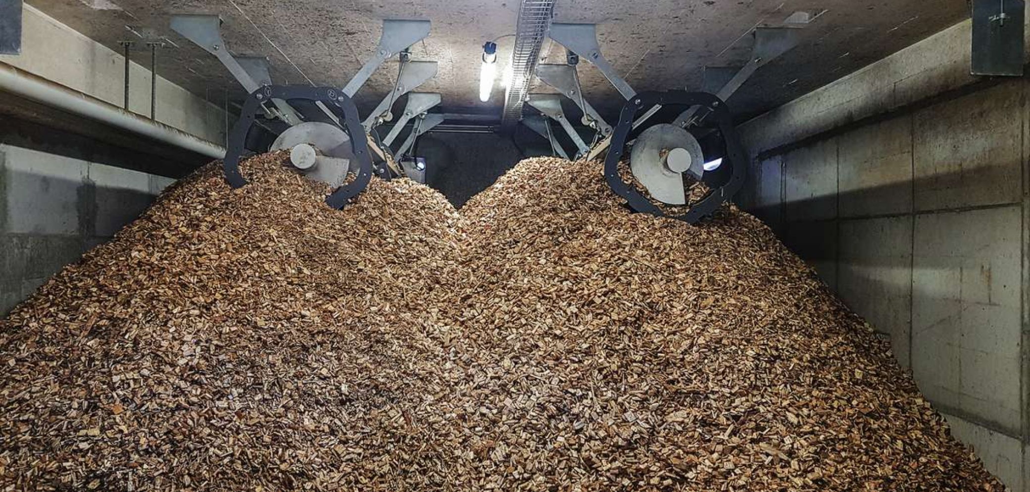 Holzspäne und -schnitzel können auch mechanisch in Bunker oder Container befördert werden. Bild: Steiner GmbH