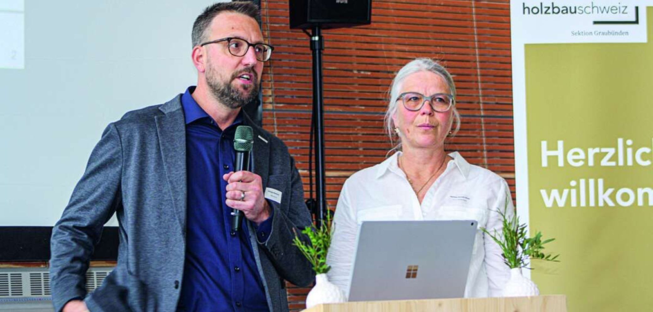 Sektionspräsidentin Barbara Schuler-Rozzi neben ihrem Amtskollegen von Holzbau Schweiz, Philipp Bosshard. Bild: Jürg Gasser
