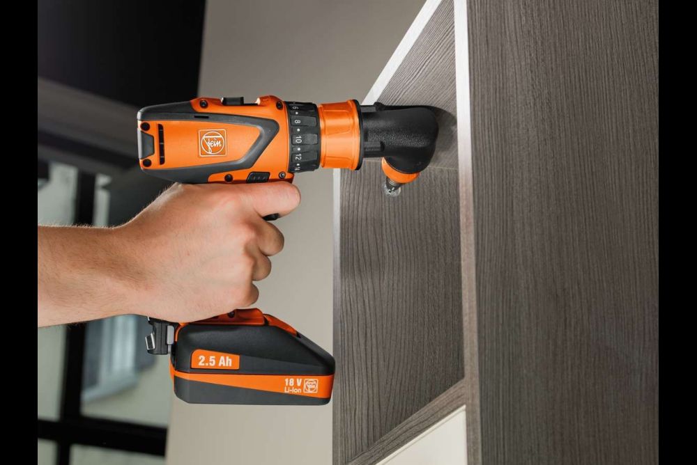 Teil des 18-Volt-Programms von Fein ist der Akku-Bohrschrauber ASCM 18 QSW. Charakteristisch für den Schrauber sind sein geringes Gewicht von 1,7 Kilogramm inklusive Akku, die kurze Bauform und das schmale Griffmass. Dadurch ist er besonders für Profis im täglichen Einsatz geeignet, die Montagearbeiten im Ausbau und Bohrungen an schwer zugänglichen Stellen meistern müssen. Mit der Quick-In- Schnittstelle lässt sich der Akku-Schrauber werkzeuglos für die jeweilige Aufgabe um- bauen. Auf diese Weise wird die Maschine in Verbindung mit den separat erhältlichen Zubehören zum Spezialisten.