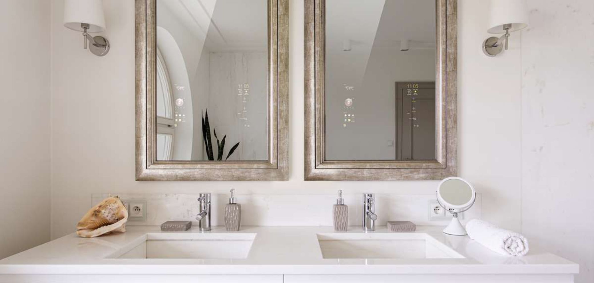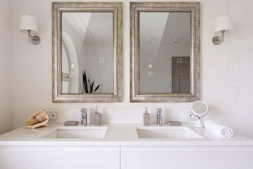 Ein smarter Spiegel bringt Multimedia-Anwendungen wie TV, Musik und Apps ins Badezimmer. Die deutsche Mues-Tec GmbH und Co., mit Zweigniederlassung in Thun BE, arbeitet dabei mit dem Badezimmermöbelhersteller Lanzet zusammen. Das Möbel bietet damit nicht nur den nötigen Stauraum. Der Nutzer hat stets seine E-Mails, Termine oder die Wetterprognose im Blick. Die Bedienung erfolgt über ein Touchpanel oder durch Sprachfunktion. Wasserdampf und allgemeine Feuchtigkeit fügen den Geräten keinen Schaden zu, auch sollten sie nicht beschlagen. Für Sicherheit sorgt zusätzlich der 12-Volt-Betrieb.