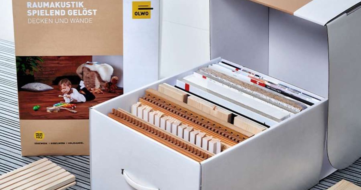 Eine angenehme Raumakustik ist gut für die Gesundheit, fördert das Wohlbefinden und steigert die Produktivität. Für Anliegen rund um die Akustik bietet die Olwo AG eine umfassende Produktpalette. Zusammengefasst in einer Kollektion bietet die Firma in einer handlichen Box zahlreiche Informationen und entsprechende Produktmuster. Damit wird aufgezeigt, wo die jeweiligen Produkte eingesetzt werden können und auf welche Weise sie dazu beitragen, Geräusche zu verringern und die Nachhallzeit zu verkürzen. Mit diesem Wissen können Decken und Wände so ausgestaltet werden, dass eine optimale Akustik erreicht wird.