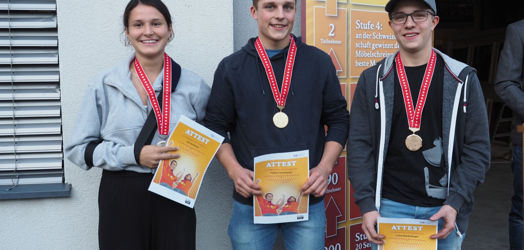In der Rangliste schwang kein Kandidat resultatmässig ganz oben aus, dennoch erreichte Fabian Tischhauser aus Grabs (Schreinerei Paul Stricker GmbH) mit 87,5 Punkten von maximal 100 ein sehr gutes Resultat und somit den 1. Rang. Die Silbermedaille sicherte sich Iris Dornbierer aus St. Gallen (Kern + Kern AG) und im 3. Rang klassierte sich Lukas Niederberger aus Unterwasser (Schreinerei Stolz). Die Lernenden, welche die Ränge vier bis sechs belegten, dürfen ebenfalls an den Regionalmeisterschaften teilnehmen. Dies sind: Cédric Perret aus Uzwil (Schreinerei Egli AG), Laura Brändle aus Mosnang (Scherrer Holzbearbeitung GmbH) und Serina Zollet aus Herisau (Koster AG Holzwelten).
