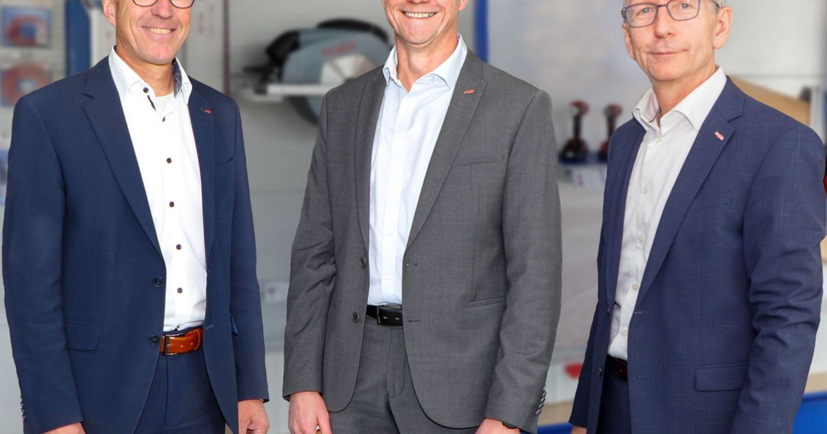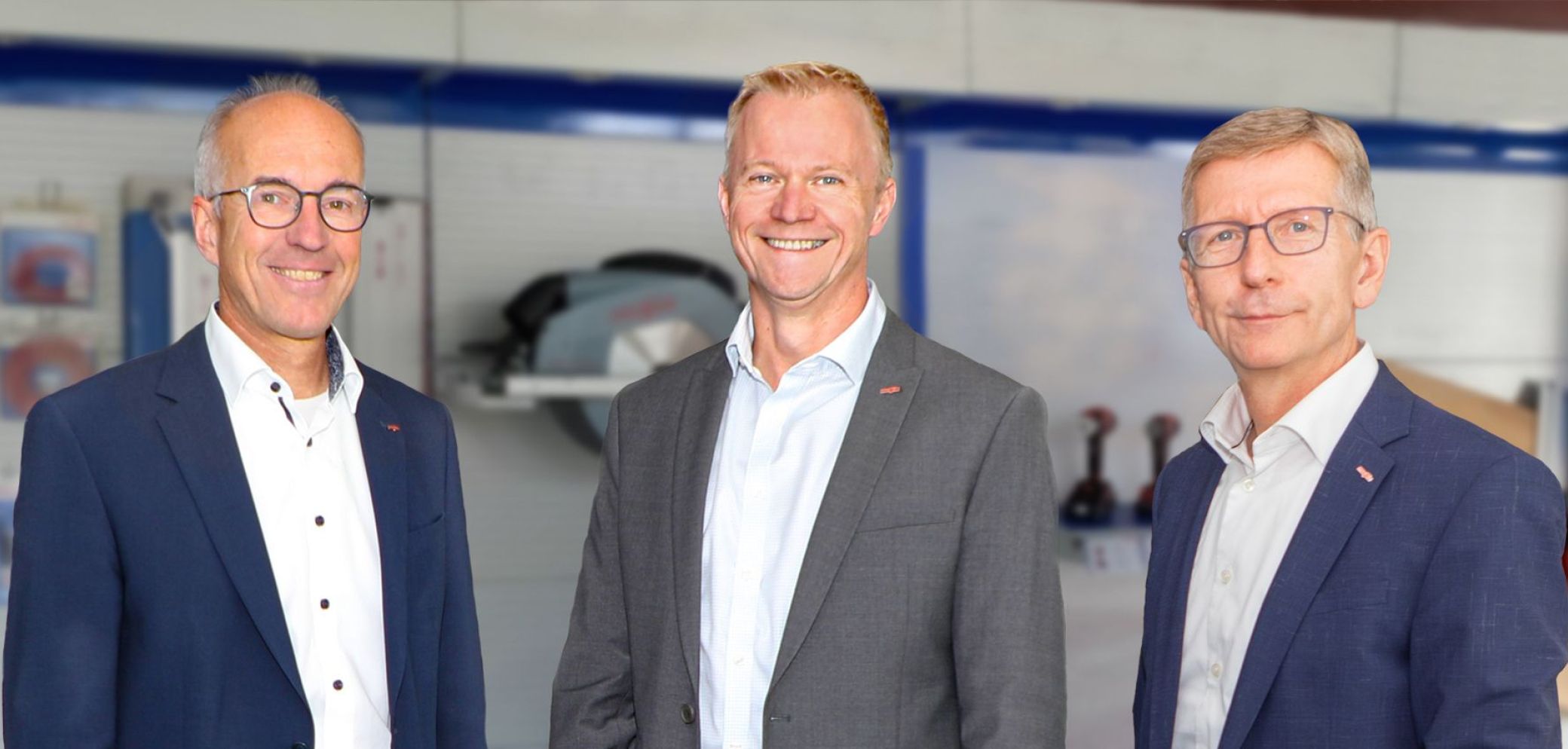 Matthias Krauss (links) übergibt zum 1. Januar 2023 den Vorstandsvorsitz der Mafell AG an Thorsten Bühl (Mitte). Er führt das Unternehmen zusammen mit Rigo Züfle (rechts). Foto: Mafell