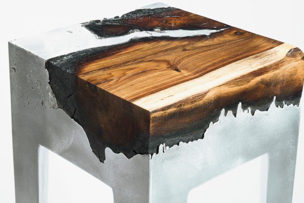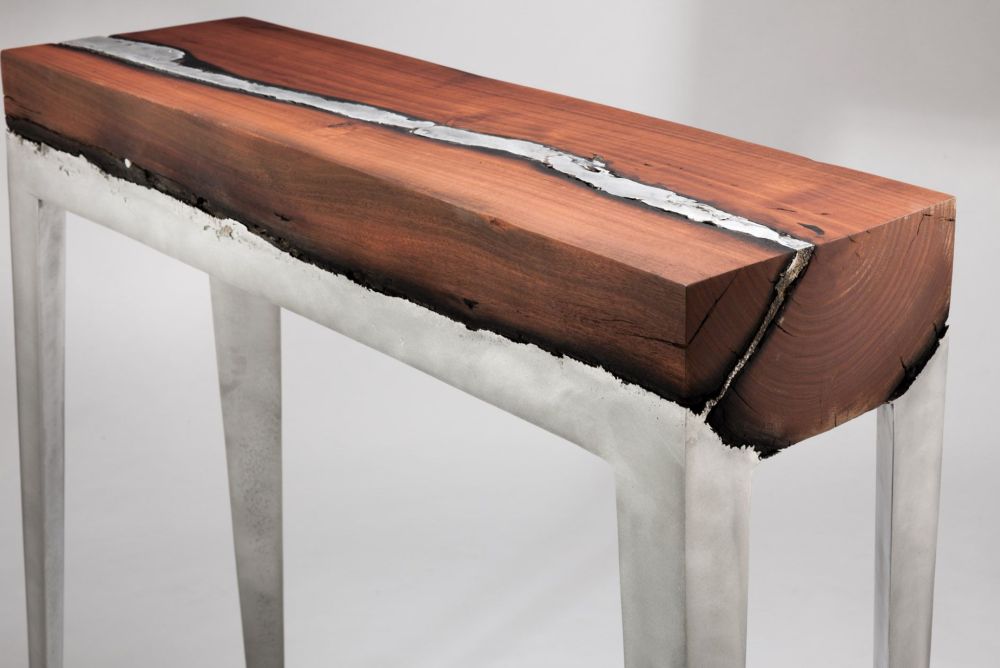Eine ihrer Arbeiten ist eine elegante Möbelkollektion aus Holz und Aluminium. Die «Wood Casting TM»-Serie basiert auf einer einzigartigen Technik, Metall in Holz zu giessen. Shamia verwendet ganze Baumstämme, die sie von lokalen Händlern bezieht. Sie schneidet die Stämme der Länge nach auf und legt das Holz in Gussformen, welche die Gestalt der Möbelstücke haben. Anschliessend giesst sie flüssiges Metall über das Holz. So entstehen einzigartige Konsolen, Bänke und Hocker, die alle Einzelstücke sind.