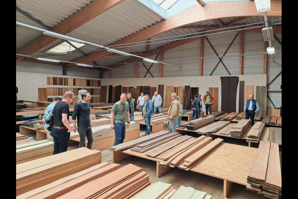 Der Schweizer Furnier-Verband beim Rundgang im Holzlager der Banderet AG. Bild: Andreas Brinkmann