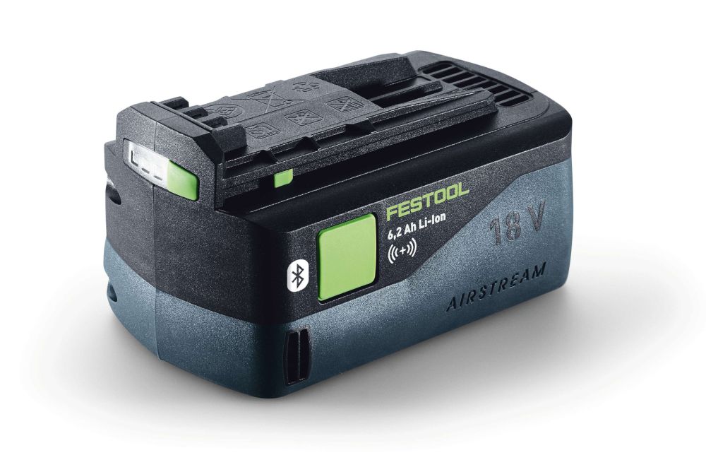 Die neuen Bluetooth Akkupacks «BP 18 Li 5,2 ASI» und «BP 18 Li 6,2 ASI» kommunizieren mit dem Bluetooth Modul am Absaugmobil ... Bild: Festool GmbH