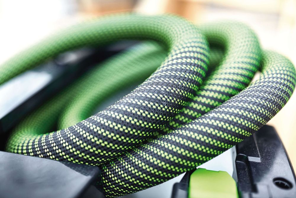 Festool entwickelte ausserdem einen glatten Saugschlauch, der im wahrsten Sinne des Wortes für eine reibungslose Absaugung und unterbrechungsfreies Arbeiten auf der Baustelle sorgt – ganz ohne lästiges Einhaken.