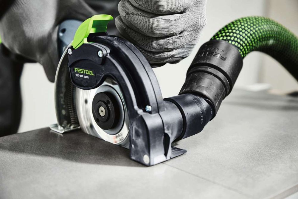 Robust, präzis und kabellos: Das Akku-Freihand-Trennsystem DSC-AGC 18 FH von Festool geht mit einem 18-Volt-Bluetooth-Akkupack an den Start und ermöglicht staubarmes Trennen von mineralischen Werkstoffen auf der Baustelle. Dank der integrierten Absaughaube werden über 95 Prozent des anfallenden Staubs direkt zum Absaugmobil transportiert. Mithilfe des Bluetooth-Akkupacks wird das gekoppelte «Cleantec»-Absaugmobil automatisch ein- und ausgeschaltet. Die Drehzahl lässt sich stufenlos von 4500 bis 8500 Umdrehungen pro Minute einstellen. Das Gerät ist kompatibel mit den Akkupacks und Ladegeräten des 18-Volt-Systems.