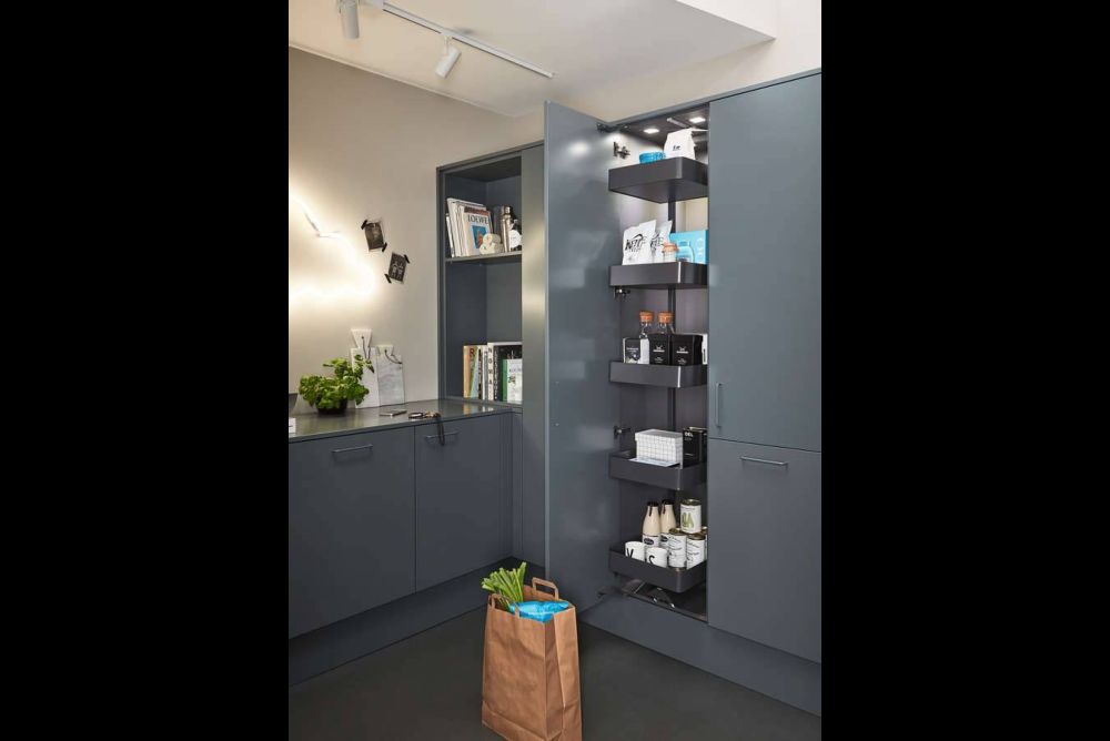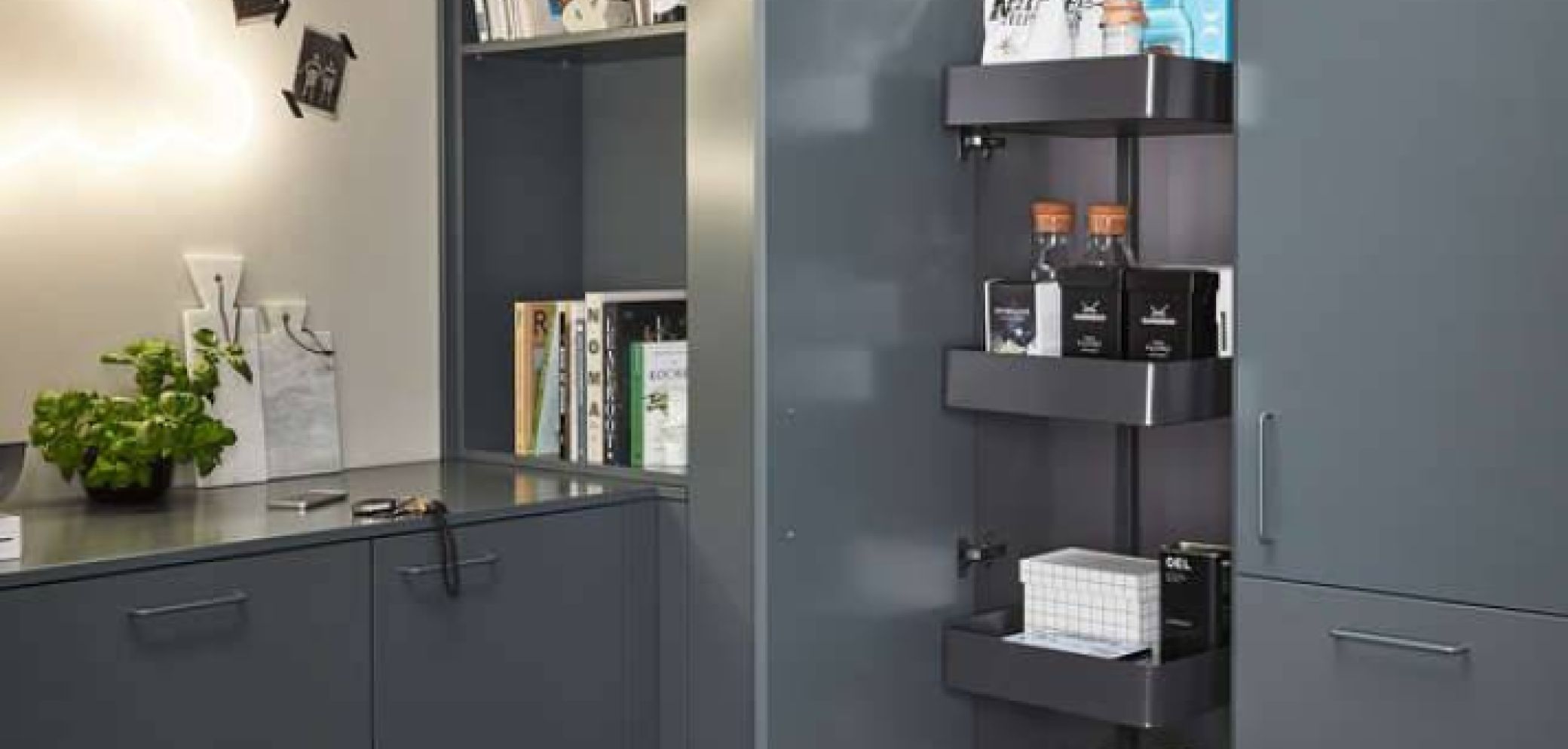 Funktionalität geniesst bei Vauth-Sagel eine hohe Priorität. Und auch das Thema Design wird mit dem gleichen Perfektionsanspruch behandelt. So hat der Systemhersteller erstmals eine Ablage in flächigem Stahldesign entwickelt und bringt so eine andere Qualität und Hochwertigkeit in die Räume hinter der Front. «Planero» ist ein hochwertiges Stahlablageprogramm für fast alle Beschlagvarianten wie den abgebildeten Hochschrankbeschlag «VS Tal Gate Planero».