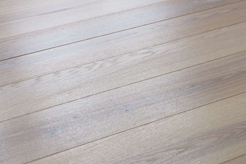 Wer seifen möchte, schleift die Oberfläche wie gewohnt, bei Möbeln mit 180er- bis 240er-Körnung, bei Böden und bei Holzbauteilen mit etwa 120er-Papier. Gebürstete und anders strukturierte Oberflächen werden ebenfalls wie gewohnt behandelt. Dann folgt ein besonderer Schritt, der aber nicht zwingend ist: das Laugen. «Durch den Auftrag der Lauge wird der sonst einsetzende, natürliche Vergilbungsprozess massiv reduziert», erklärt Rolf Kurth, Geschäftsführer der Ecovos AG im bernischen Worblaufen. Überhaupt geht es beim Seifen darum, das Aussehen des frisch geschliffenen, hellen Holzes durch die Behandlung dauerhaft zu bewahren. Dazu werden meist weisse Farbpigmente beigemischt, das kann schon in der Lauge erfolgen und setzt sich beim Seifen fort. Grundsätzlich können aber auch andere Farbpigmente beigemischt werden, was sich einige Parketthersteller auch zunutze machen, um besondere Farbeffekte zu erzielen.