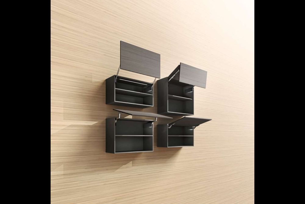 Ob Falten, Schwenken, Liften oder Klappen – Klappenbeschläge im Oberschrank sind praktisch und sorgen für völlige Bewegungsfreiheit sowie bestmöglichen Zugriff. Blum bietet mit den kompakten Versionen «Aventos HF top», «HS top», «HL top» und «HK top» die Möglichkeit, Klappen spannend zu inszenieren. Die «Aventos top»-Klappenbeschläge überzeugen mit einer fixen Befestigungsposition von Kraftspeicher und Frontbefestigung, unabhängig von der Korpushöhe, einer adaptiven «Blumotion»-Einstellung und der Kraftspeichereinstellung von vorne, selbst bei montierter Abdeckkappe. Darüber hinaus lässt sich für die komplette Familie die gleiche Abdeckkappe einsetzen und somit eine einheitliche, dezente Optik generieren.