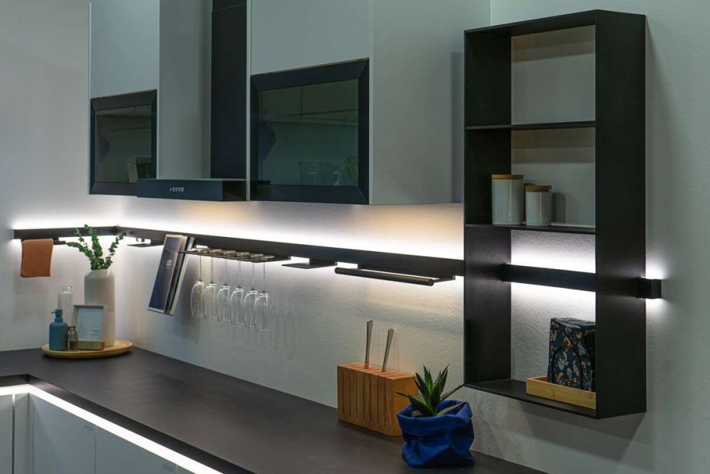 «Sign» ist ein beleuchtetes Profilsystem der Firma L&S, das sich in der Küche, dem Bad oder dem Wohnraum einsetzen lässt. Das schwarz eloxierte Aluminiumprofil ist schlicht designt und fügt sich damit gut in die Umgebung ein.