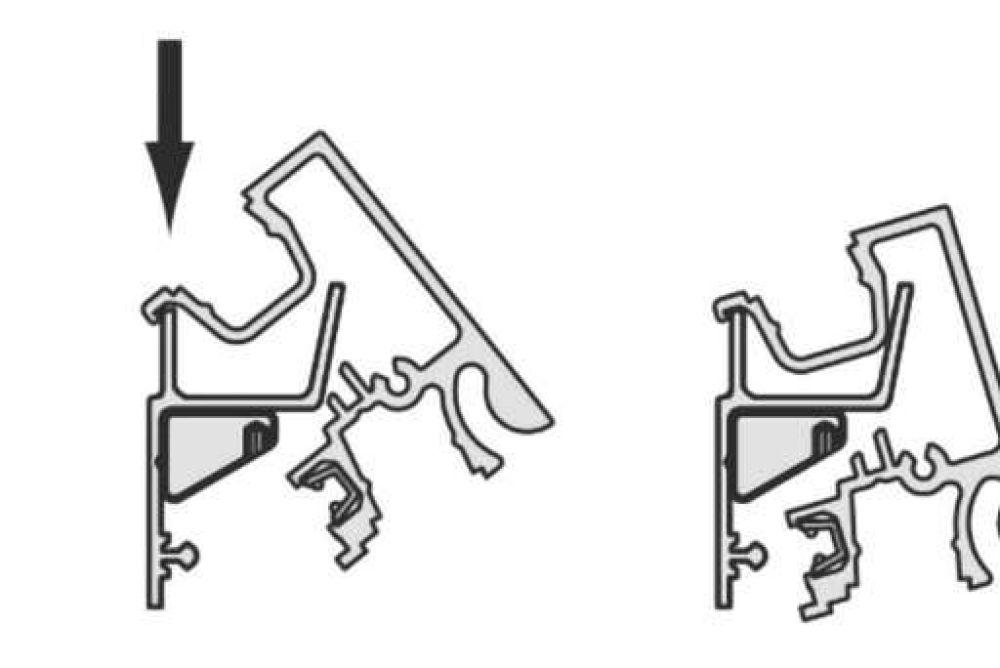 Die Montage des Profils ist einfach: Zuerst wird das Grundprofil an die Wand montiert. Anschliessend lässt sich das fertig konfektionierte Oberprofil nur noch einhängen und mit einem Klick sichern (Abb. links). So können defekte LED-Bänder auch schnell und mühelos ersetzt werden.