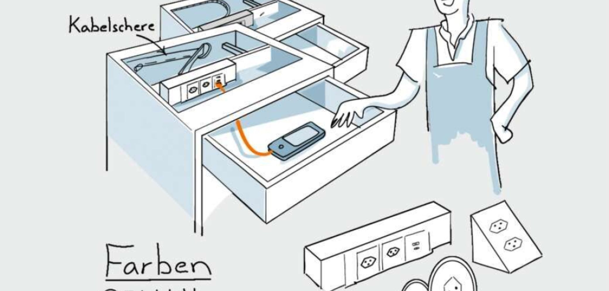 Die Beat Bucher AG bietet für den Einbau in Schubladen Steckdosen-Möglichkeiten mit 230 Volt, USB-A und USB-C. Das ist praktisch und sinnvoll in Küche, Bad, Garderobe und überall da, wo Kleingeräte geladen werden sollen. Mit den «Media-Schubladeneinsätzen» ist es kein Problem, Geräte wie Smartphone, Föhn, Zahnbürste und Küchengeräte mit Strom zu versorgen. Die Kabelführungskette sowie die Kabelschere ermöglichen es, ab einem Platz von 27 mm zwischen Schublade und Korpusrückwand den Kabelsalat perfekt zu beseitigen. Die Produktpalette bietet Farben wie Schwarz, Weiss und Aluminium. Diese Möglichkeiten können jetzt auch als Zubehör im Schubladen-Konfigurator der Box-Manufaktur bestellt werden.