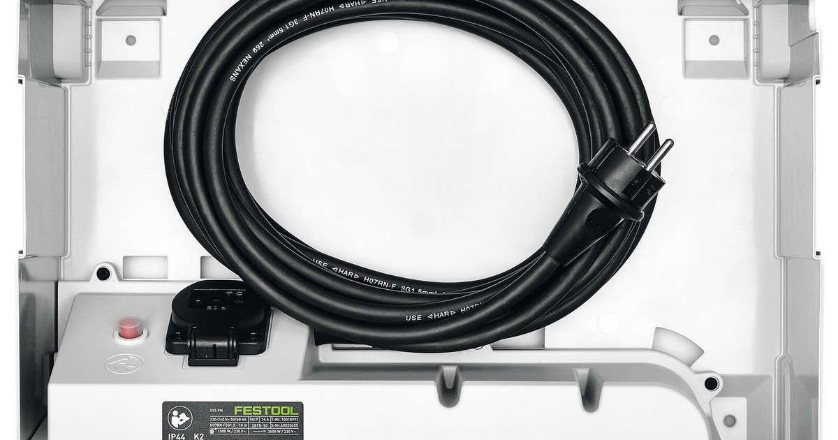 Um die Arbeitsplatzgestaltung im Handwerk noch weiter zu optimieren, bietet Festool eine neue Generation Stromverteiler an. Der «SYS-PowerHub» verbindet die Vorteile einer herkömmlichen Kabeltrommel mit dem Systainer-System. Mit einem 10 Meter langen Kabel, vier aussen angebrachten 230-V-Steckdosen und einer innenliegenden Steckdose bringt er Unabhängigkeit und Schutz mit System. Das Kabel lässt sich für den Transport und zur Aufbewahrung sauber im Innenraum des Systainers verstauen. Benötigte Kleinteile oder zusätzliche Akkupacks finden ebenfalls im Inneren Platz.