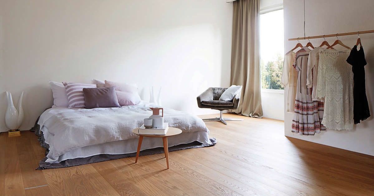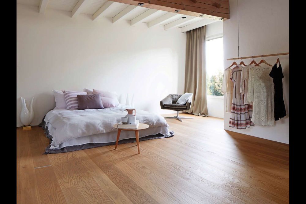 Absolut problemlos ist auch die Verwendung von werksversiegeltem Parkett, wie es die Bauwerk Parkett AG in St. Margrethen SG anbietet. Die glatten oder verschieden stark gebürsteten Parkettriemen werden im Walzverfahren versiegelt oder geölt. Vorteil ist, dass so die Fläche wie auch der Übergang in die Fase und Kante optimal behandelt werden können. Zudem findet bis zum Einbau bereits ein Reifeprozess statt, wodurch die Beschichtungen fertig ausgehärtet sind.