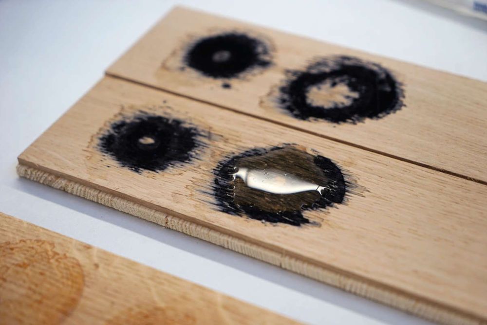 Wer einen Holzboden feucht aufwischen möchte, wird keinen Eimer mit Wasser auslehren, um dieses zu verteilen und wieder aufzunehmen. Das Gleiche gilt beim Behandeln mit Ölen und Lacken. Nicht nur dass die Flüssigkeit durch die Fugen dringt und sich unter dem Parkett allenfalls sammeln kann – gerade Öl trocknet dann praktisch nicht mehr aus –, die ungleiche Aufnahme verursacht Flecken, und Fugen können verkleben. Bei Letzterem kann es beim Abschwinden des Holzes zu Kantenabrissen kommen.